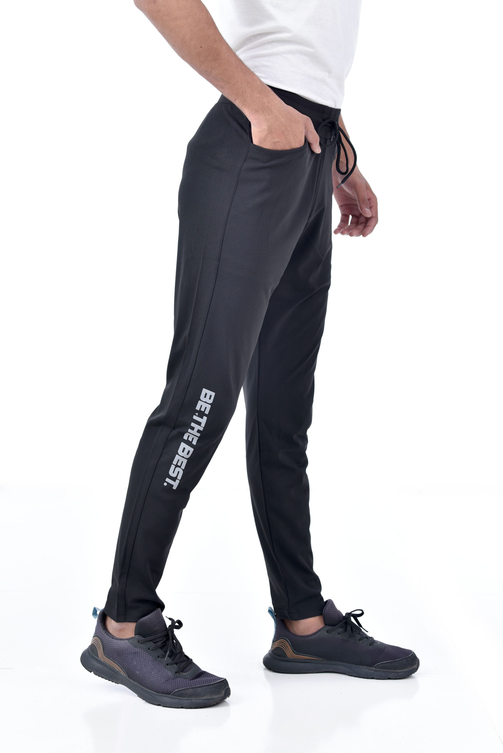 With dual pockets and a structured Lycra build, these motivational pants combine performance tech with an uplifting edge.