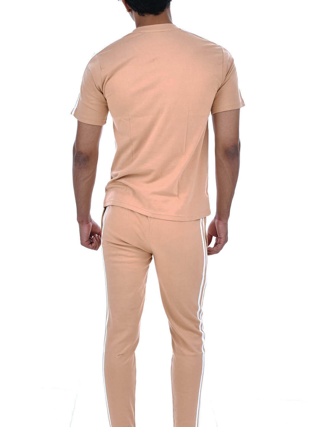 A bold twin-set with contrast striping and a fitted look. Designed for coordinated impact—ideal for social scenes or stylish leisure.